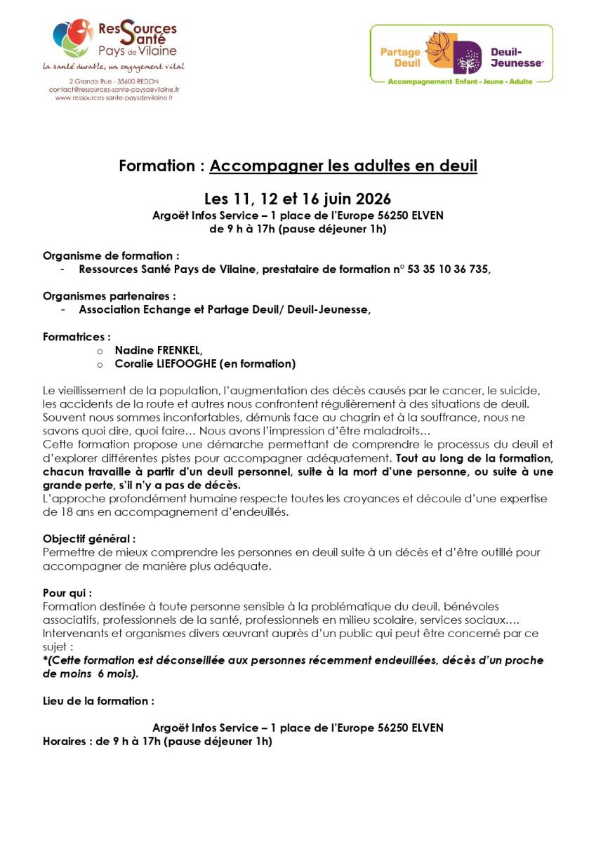 Formation : Accompagner les adultes en deuil - 11, 12 et 16 juin 2026